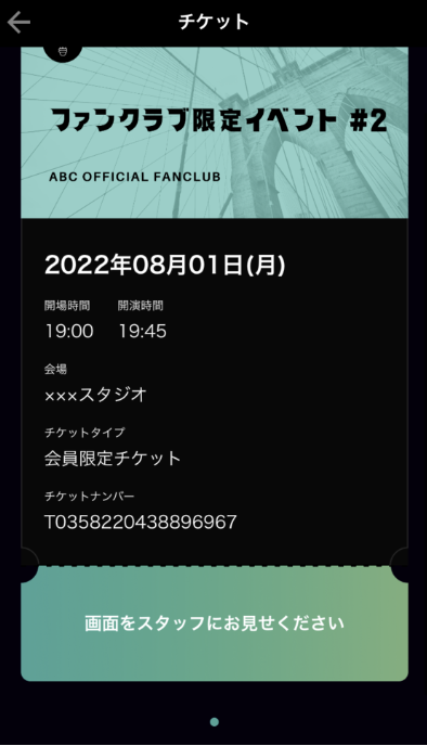 チケットの画面をスタッフにお見せください。